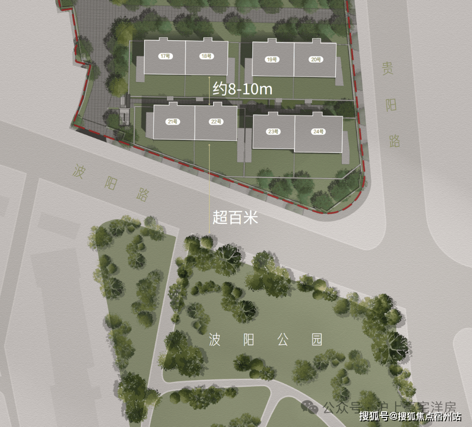 每户私享超 100㎡转角庭院,搭配超 270° 环景视野与超百米奢阔楼间距,即便二排楼间距也达 8-10 米